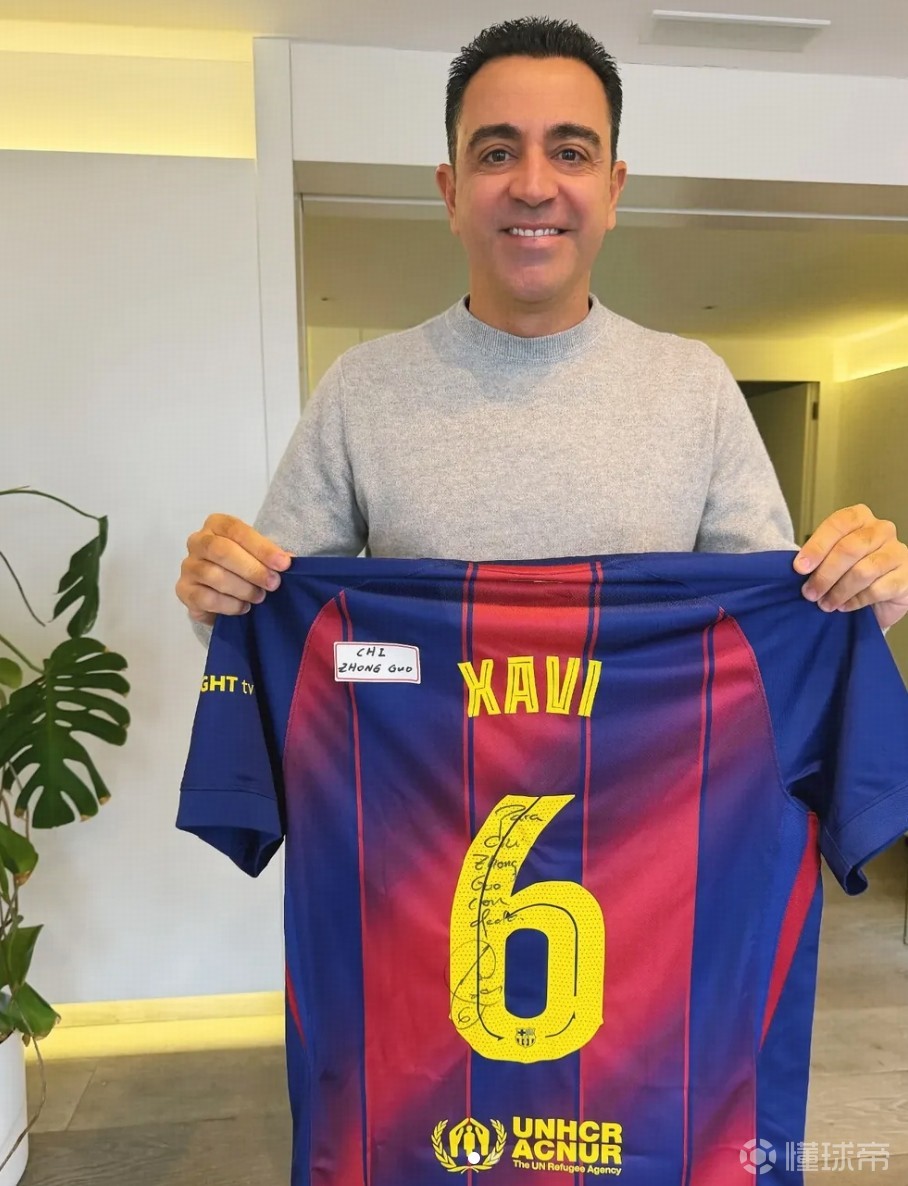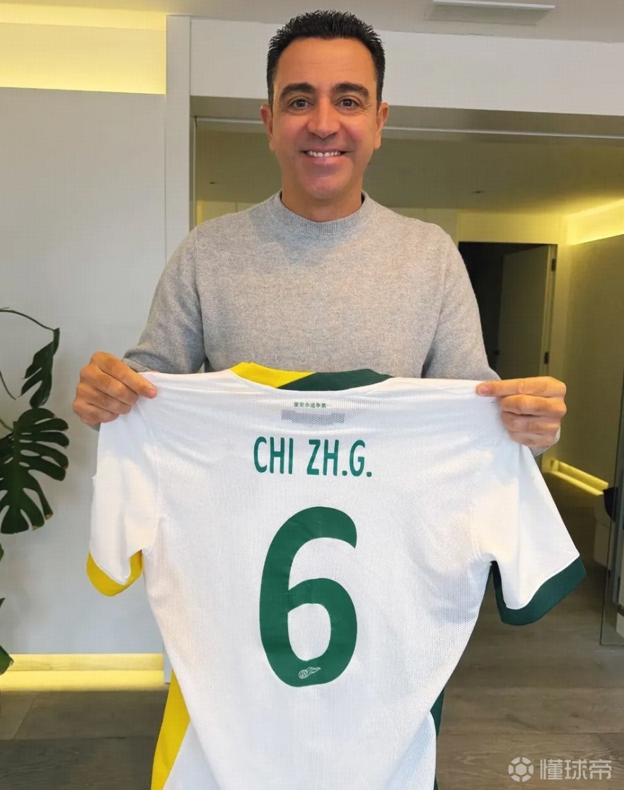 池忠国此次晒出的两张照片,其中一张哈维手持他在巴萨6号球衣,上面有他的亲笔签名以及写给池忠国的寄语。另一张照片则是哈维展示池忠国在国安的6号球衣。
